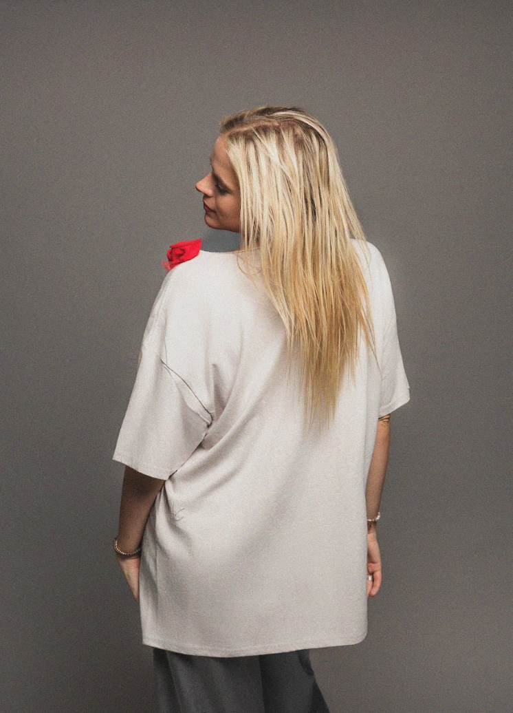 Nirvana oversized tee with rose appliqué