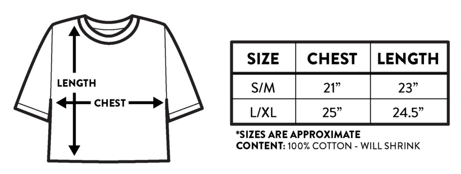 Officially licensed band tee. Adult oversized crop tee with raw edge hem.